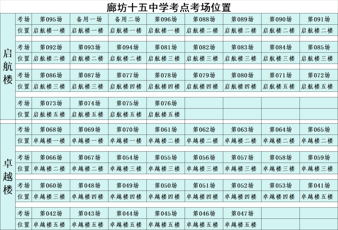 2025年高考廊坊市第一中学、第十五中学、新世纪中学高考考点考场示意图