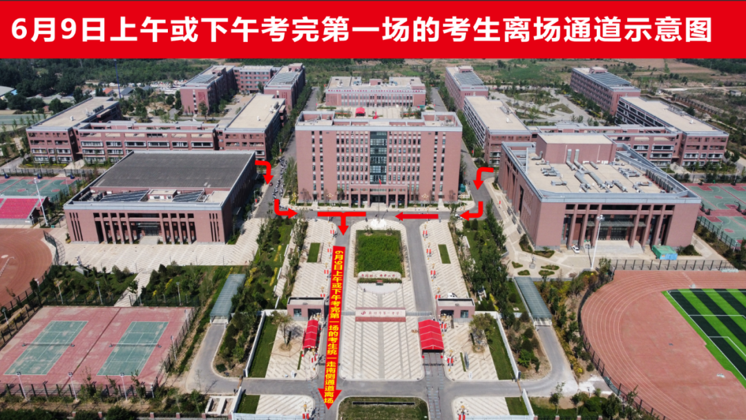 6月9日上午或下午考完第一场的考生离校走南侧甬路