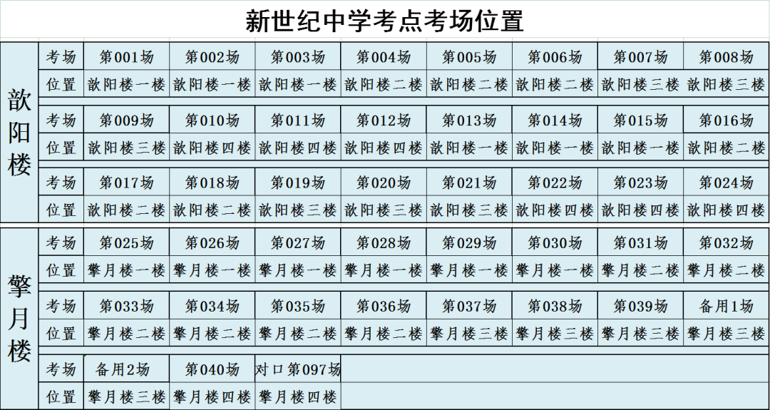 2025年河北省普通高等学校招生统一考试将于6月7日-9日举行,为方便开发区广大考生和家长提前了解考点所处位置,安排出行方式,熟悉考点环境,现公布考试时间及新世纪中学考点考场、第十五中学考点考场分布示意图。