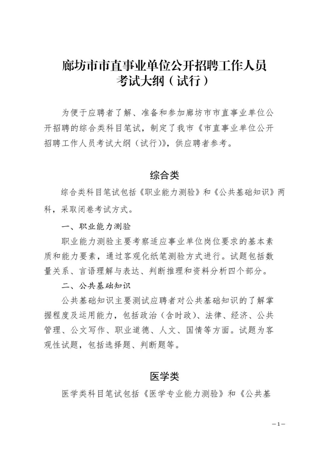 3.廊坊市市直事业单位公开招聘工作人员考试大纲(试行)