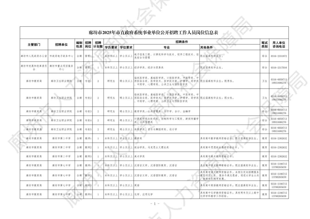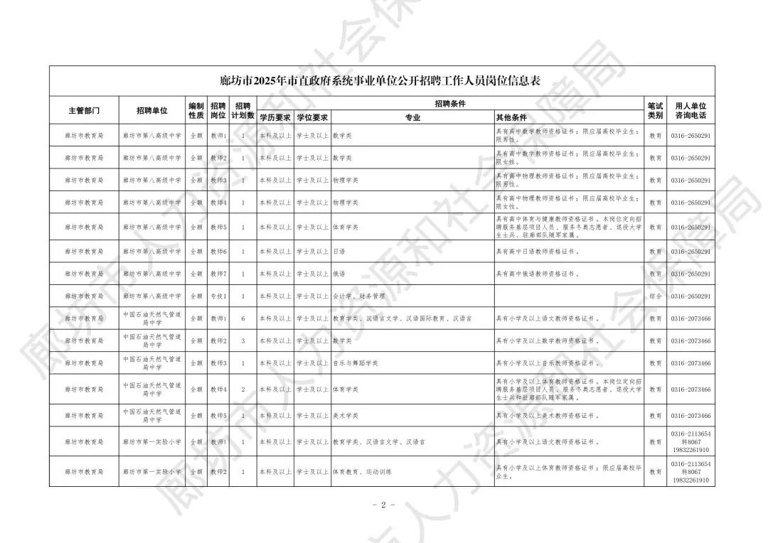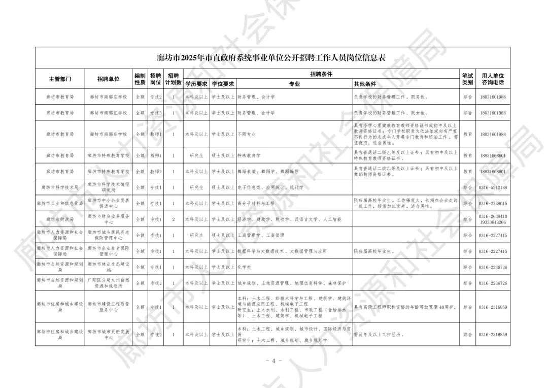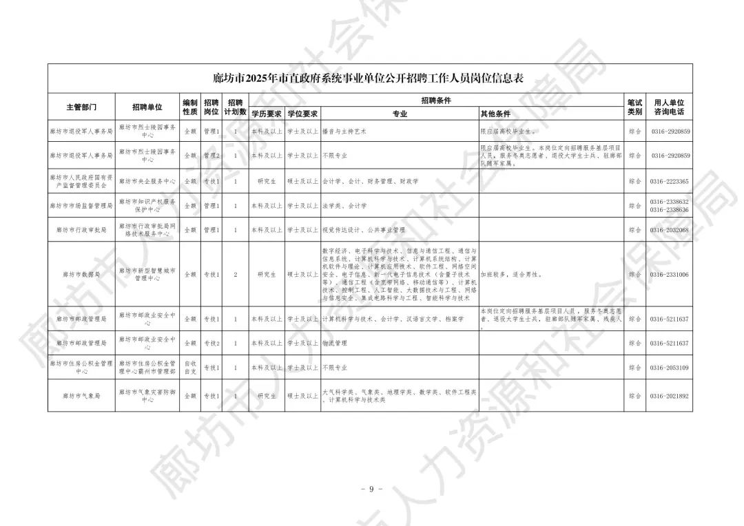 2.廊坊市2025年市直政府系统事业单位公开招聘工作人员岗位信息表