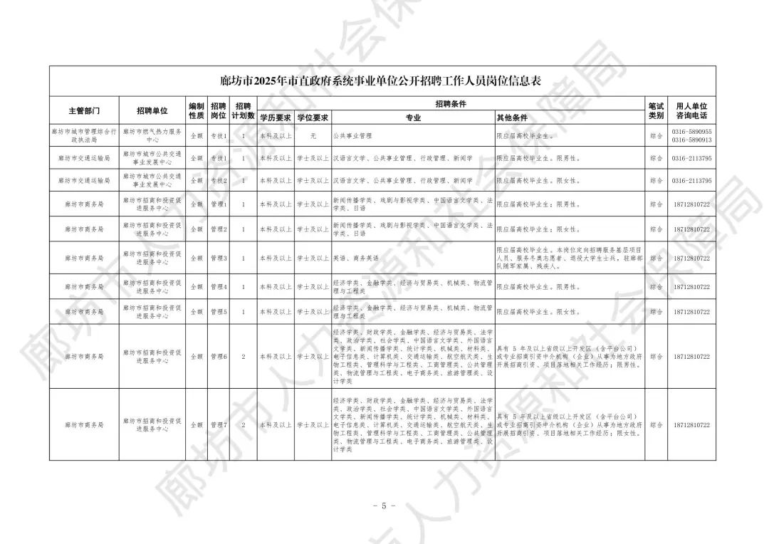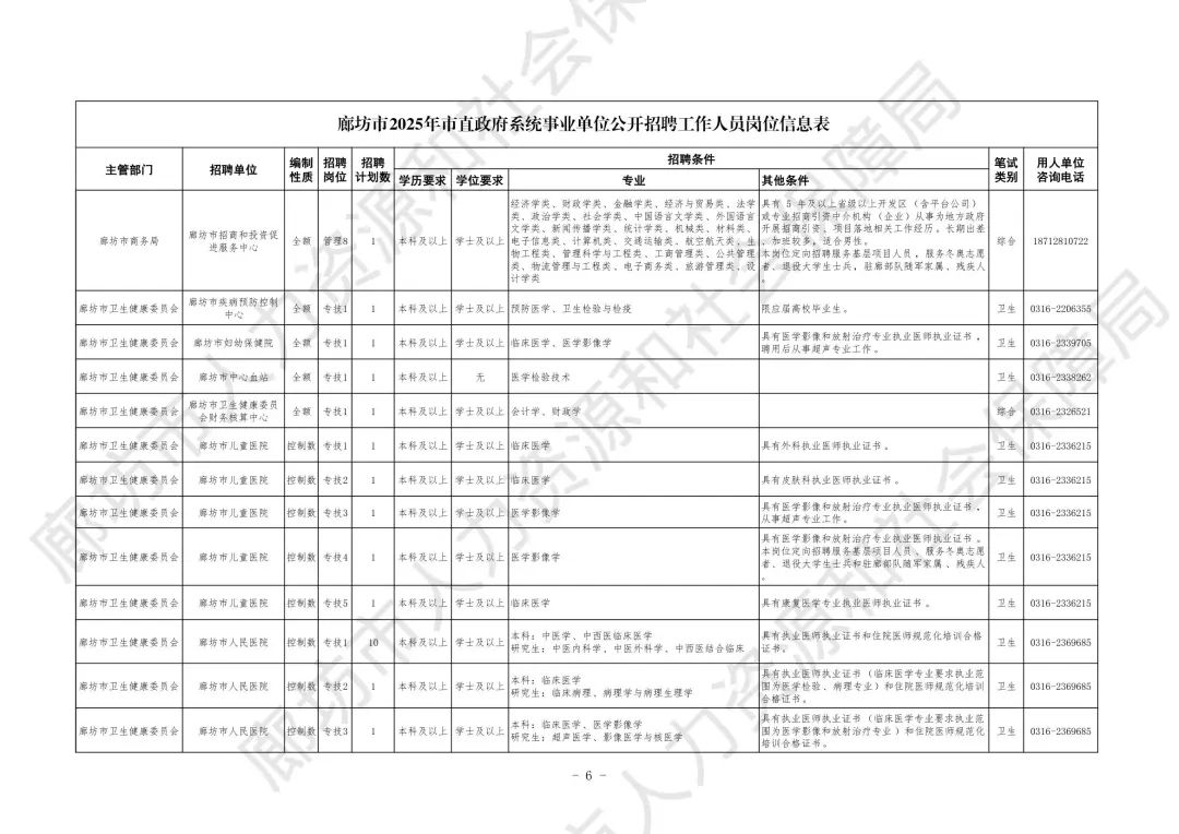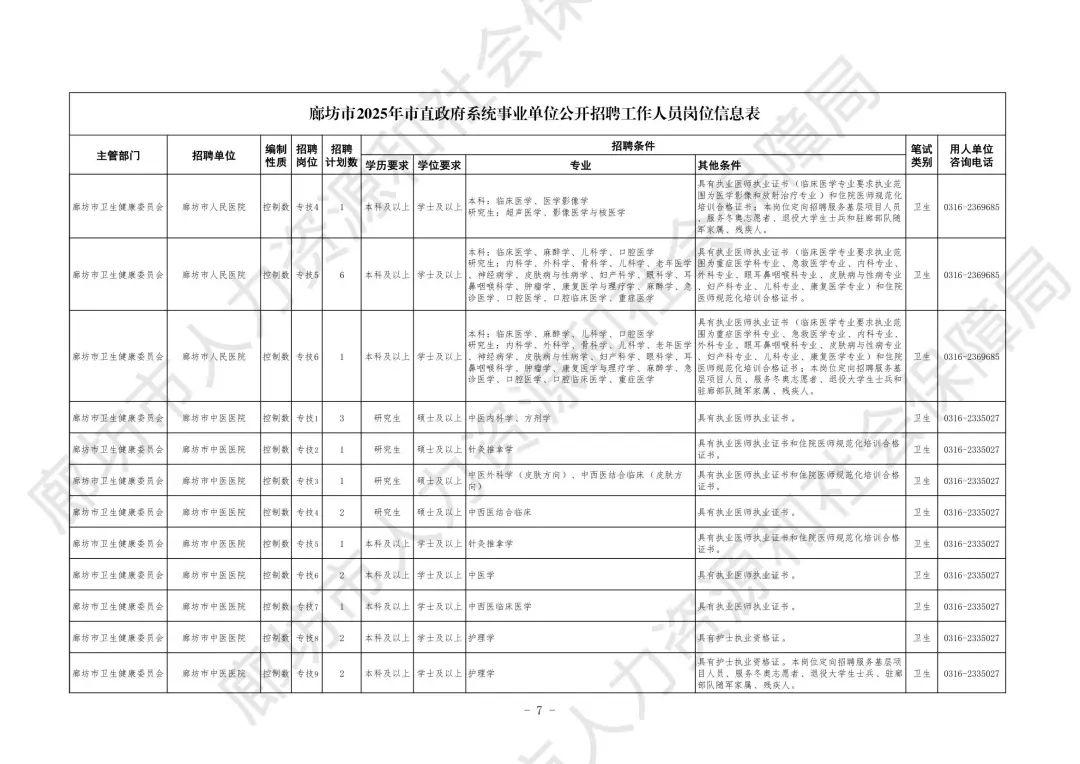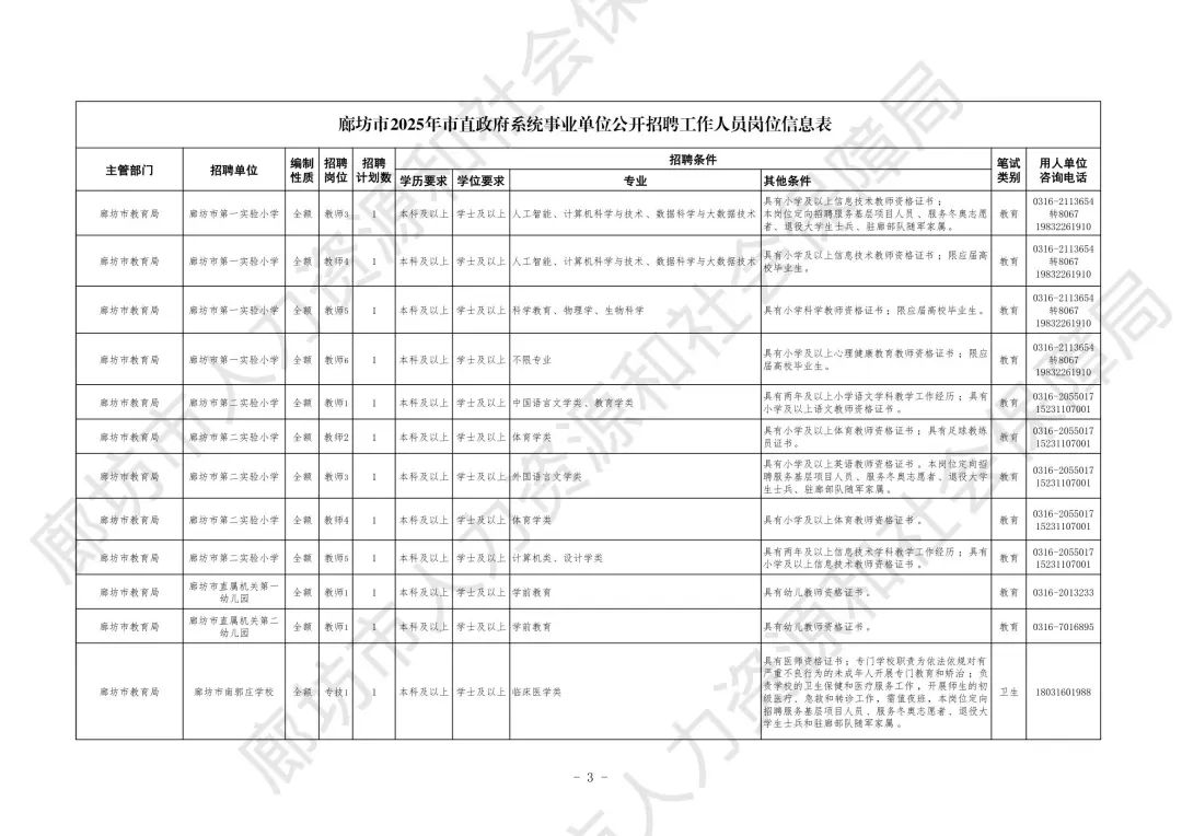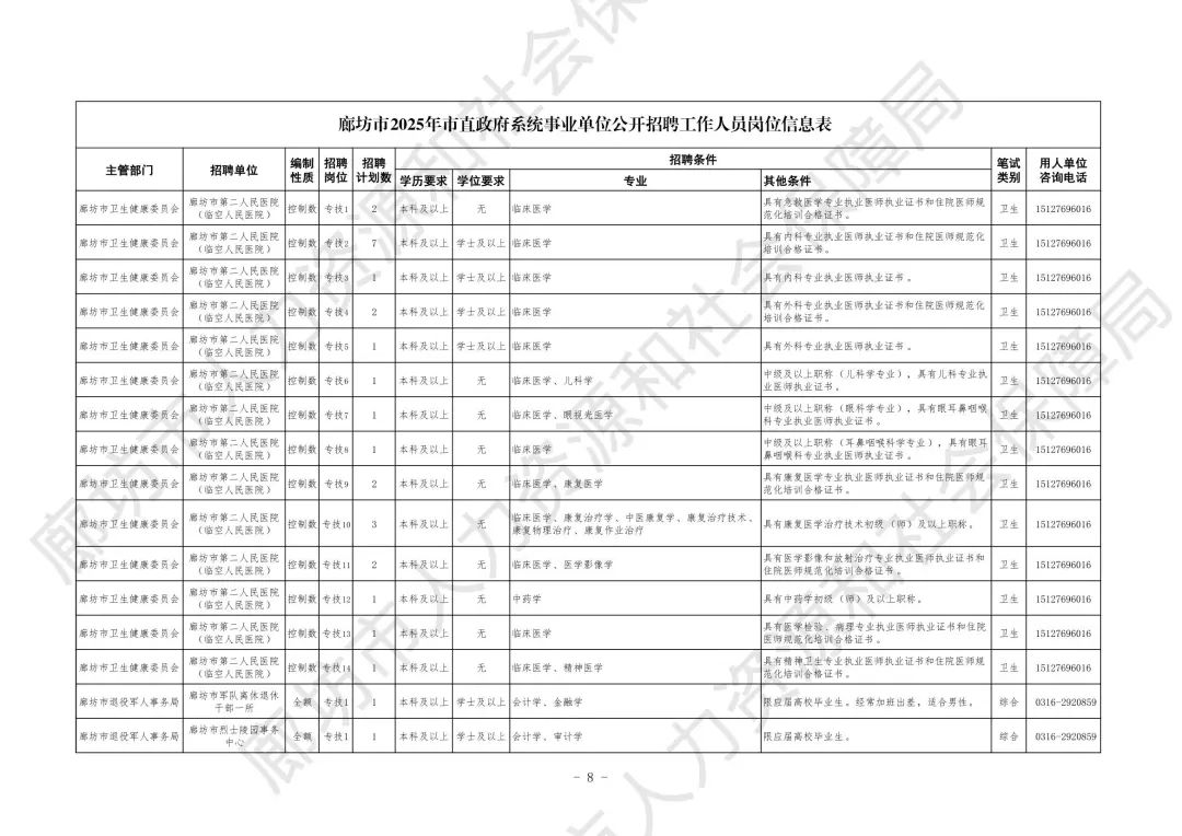 2.廊坊市2025年市直政府系统事业单位公开招聘工作人员岗位信息表